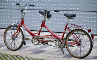 Entstanden aus zwei California 24 Zoll Falträdern. Dieses Tandem ist nicht faltbar. Umso mehr ist es für jeden einfach zu fahren und macht viel Freude… natürlich doppelte Freude für Zwei!Â