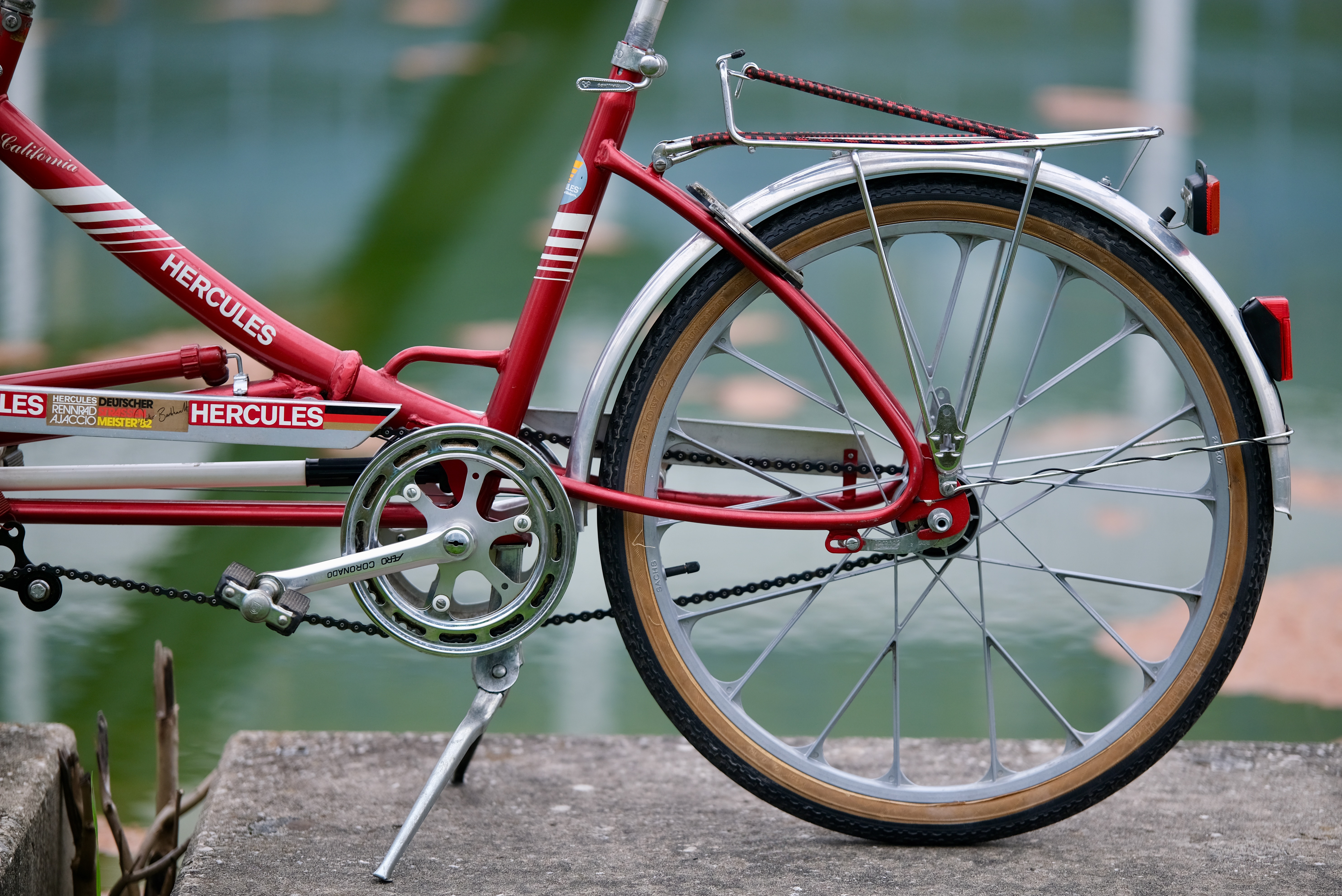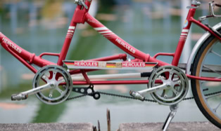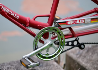 Ich glaube die Hercules Mitarbeiter waren auch irgendwie mächtig stolz auf dieses Fahrrad, sonst hätten Sie nicht so oft den Markennamen darauf platziert. Stand 2025 wurde diese schöne Tandem nur 139,186047km pro Jahr bewegt!