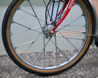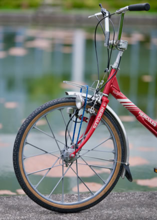 Vorne wird mit Trommel- und Felgenbremse verzögert. Hinten mit Rücktritt.Â