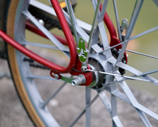 Die Laufräder sind in Alu-Druckguss gefertigt und das hintere wurde irgendwie mit einer Sachs Torpedo 3-Gang Nabe bestückt.Â