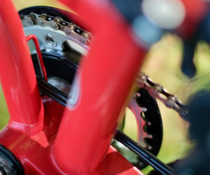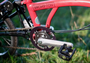 An die Übersetzungsbandbreite von einer hinteren treuen Sachs Torpedo 3-Gang Nabe und dem vorderen Schlumpf Speed Drive, kommt kein heutiges und damaliges Brompton von der Stange heran.Â