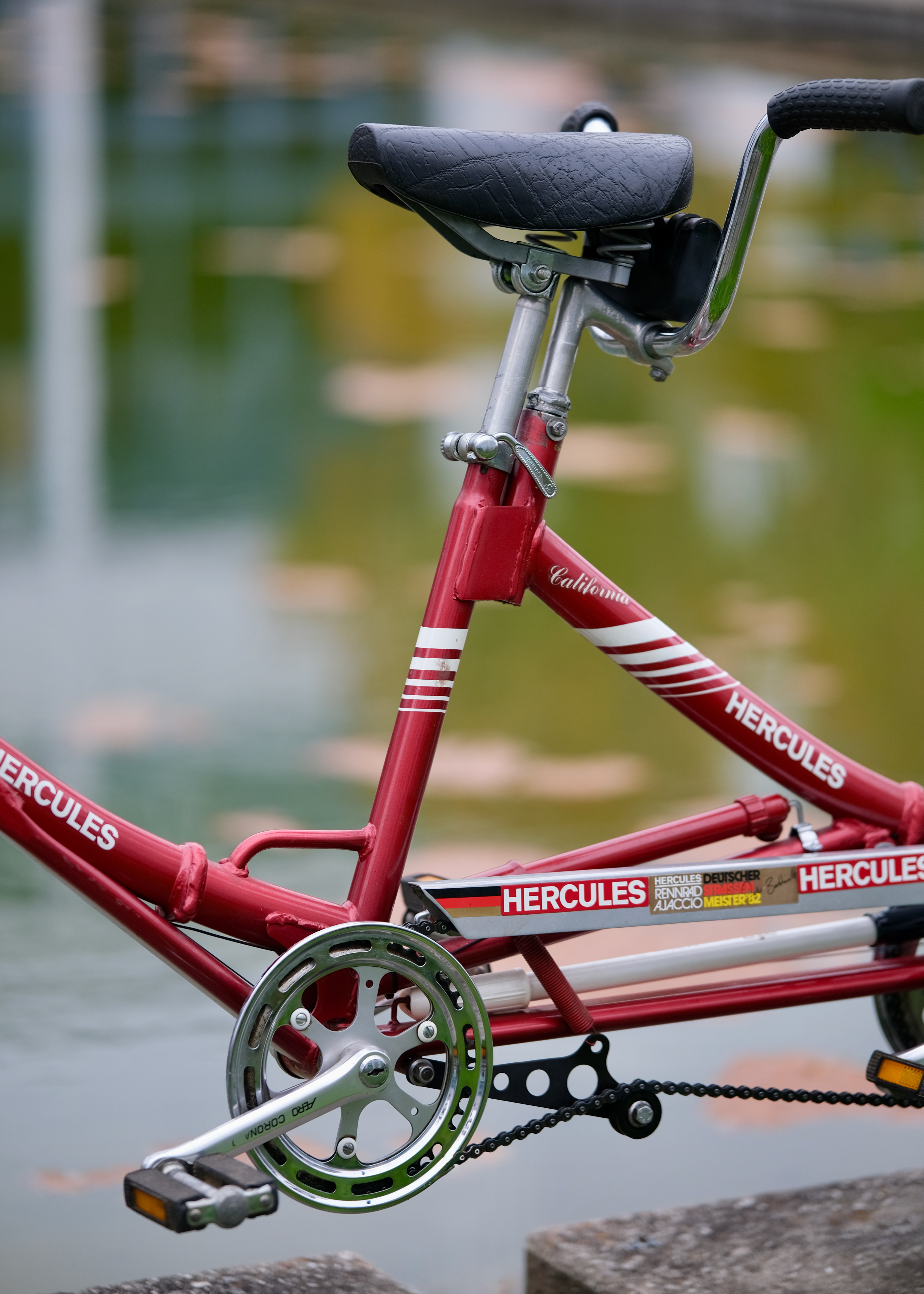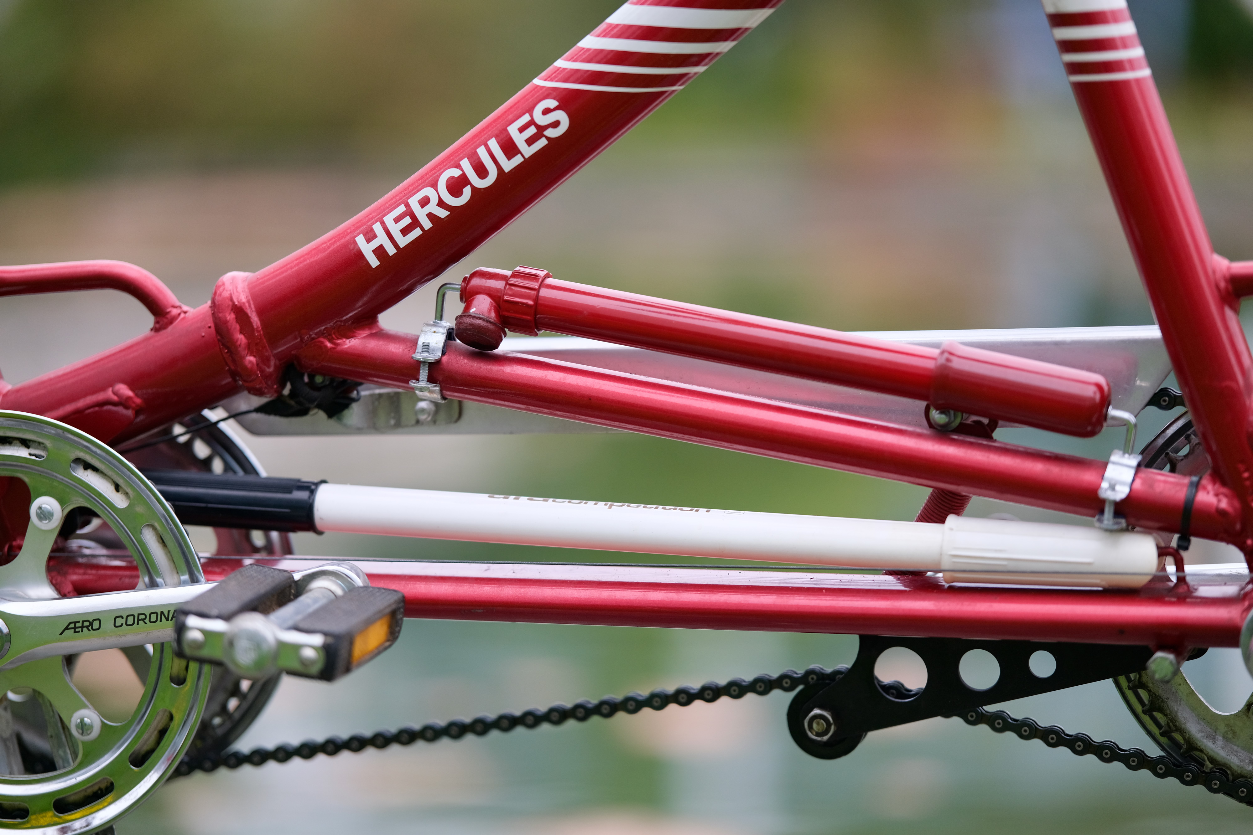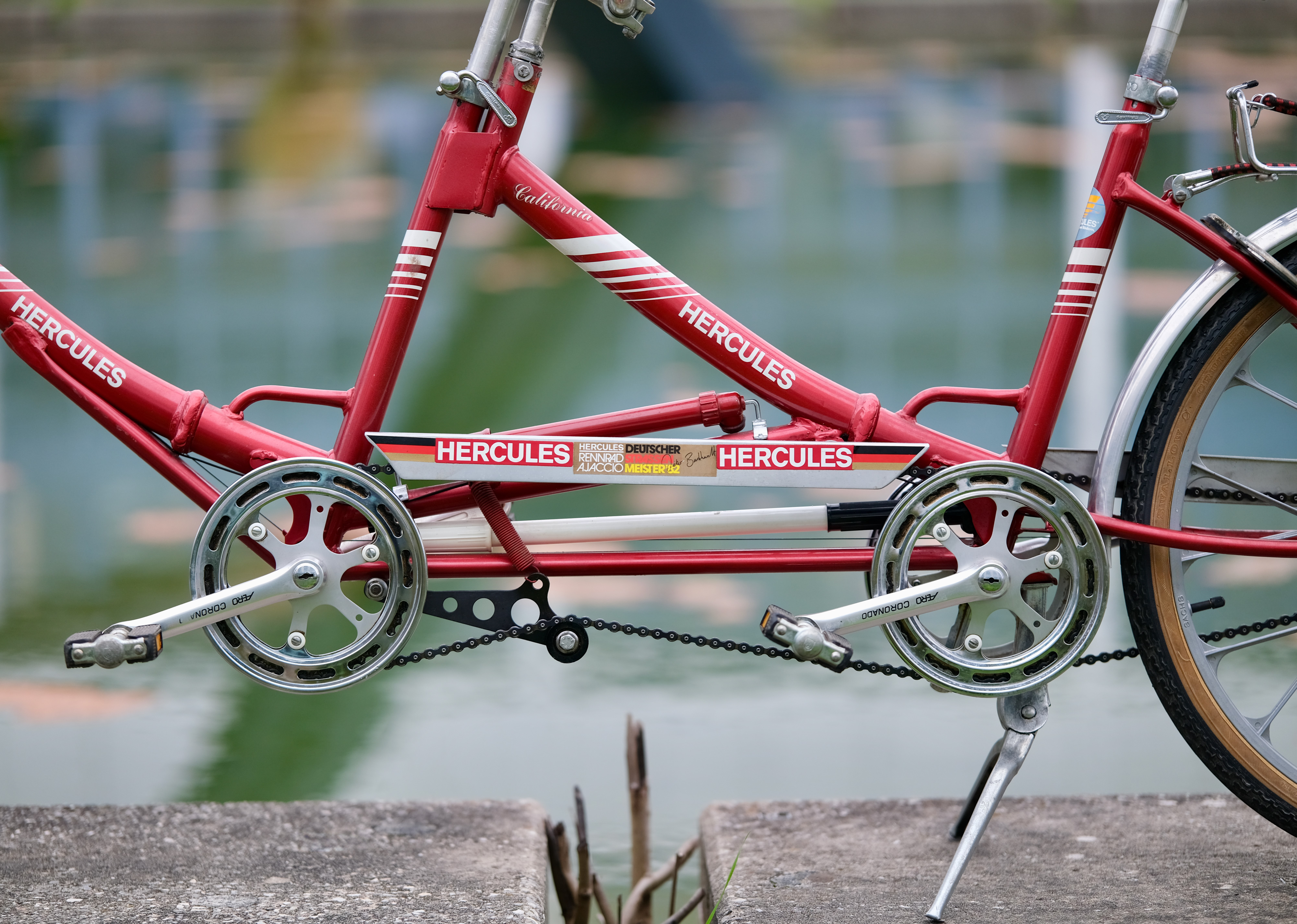 Ich glaube die Hercules Mitarbeiter waren auch irgendwie mächtig stolz auf dieses Fahrrad, sonst hätten Sie nicht so oft den Markennamen darauf platziert. Stand 2025 wurde diese schöne Tandem nur 139,186047km pro Jahr bewegt!