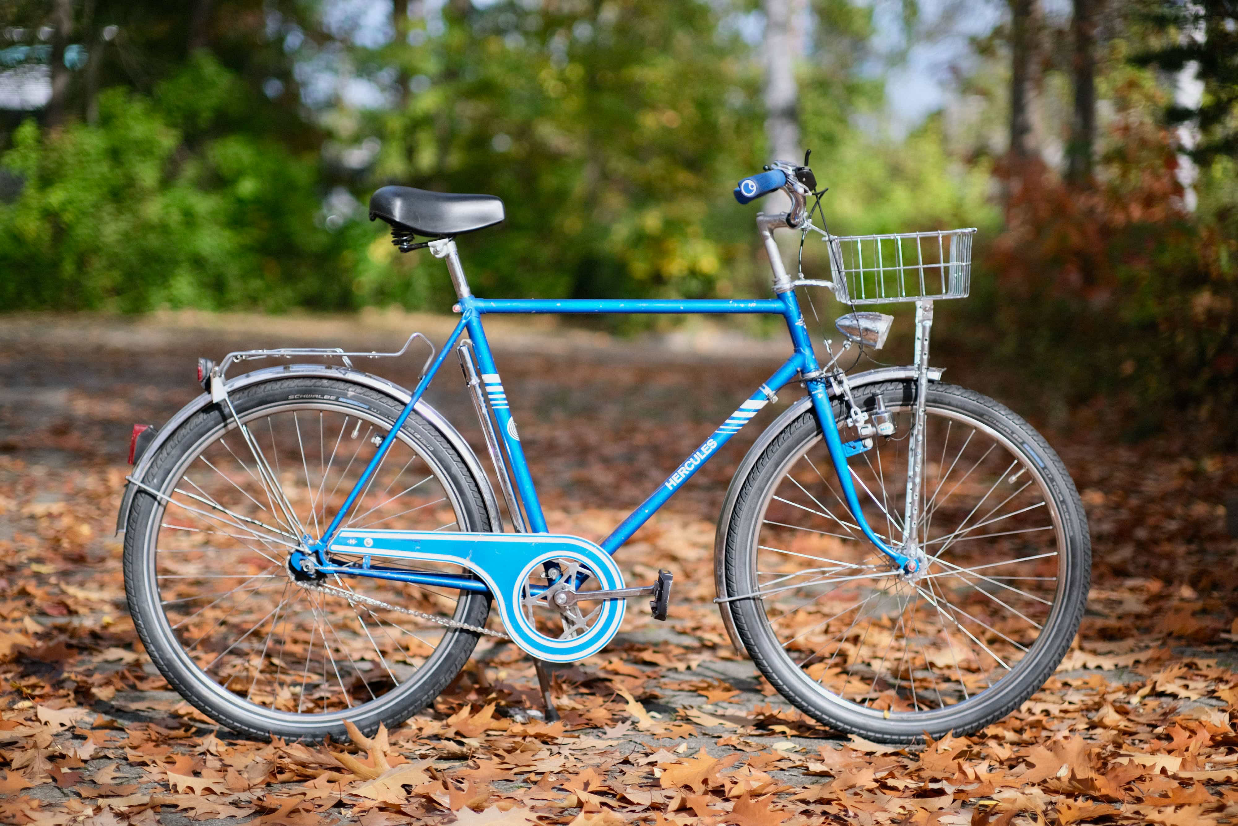 Ein Schätzchen der 80er. Ein aufgemöbeltes Garagenfahrzeug eines fränkischen Opas. Jede Lagerkugel und jedes Zahnrad wurde gereinigt und neu gefettet. Der verchromte Nordlicht Dynamo liefert noch Jahrzehnte lang helles Kerzenlicht. Zusätzlich Batterierücklicht als Backup oben am Gepäckträger. Sicherere zweiadrige Verkabelung passt hier nicht vom Stil bzw. wäre langweilig. Edelstahl Felgen und Schutzbleche rosten nicht. Die Weinmann Vorderradbremse ist eher dazu gedacht die vorderen Felgenflanken sauber zu wischen aber gehört eben dazu. Mit den Shimano XT Klickpedalen bekommt man ordentlich Druck auf die treue Sachs 515 Torpedo 3-Gang Nabe hinten.