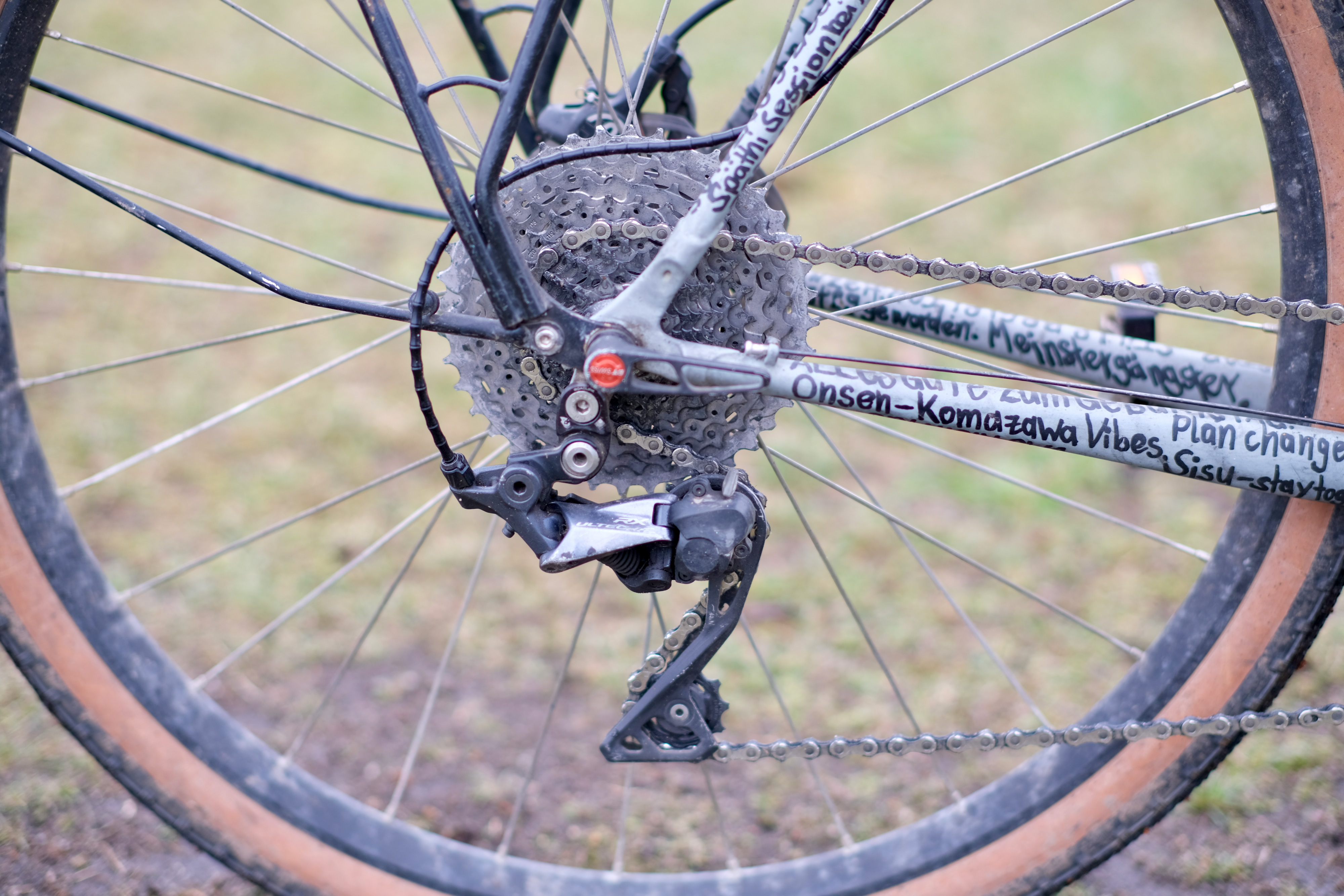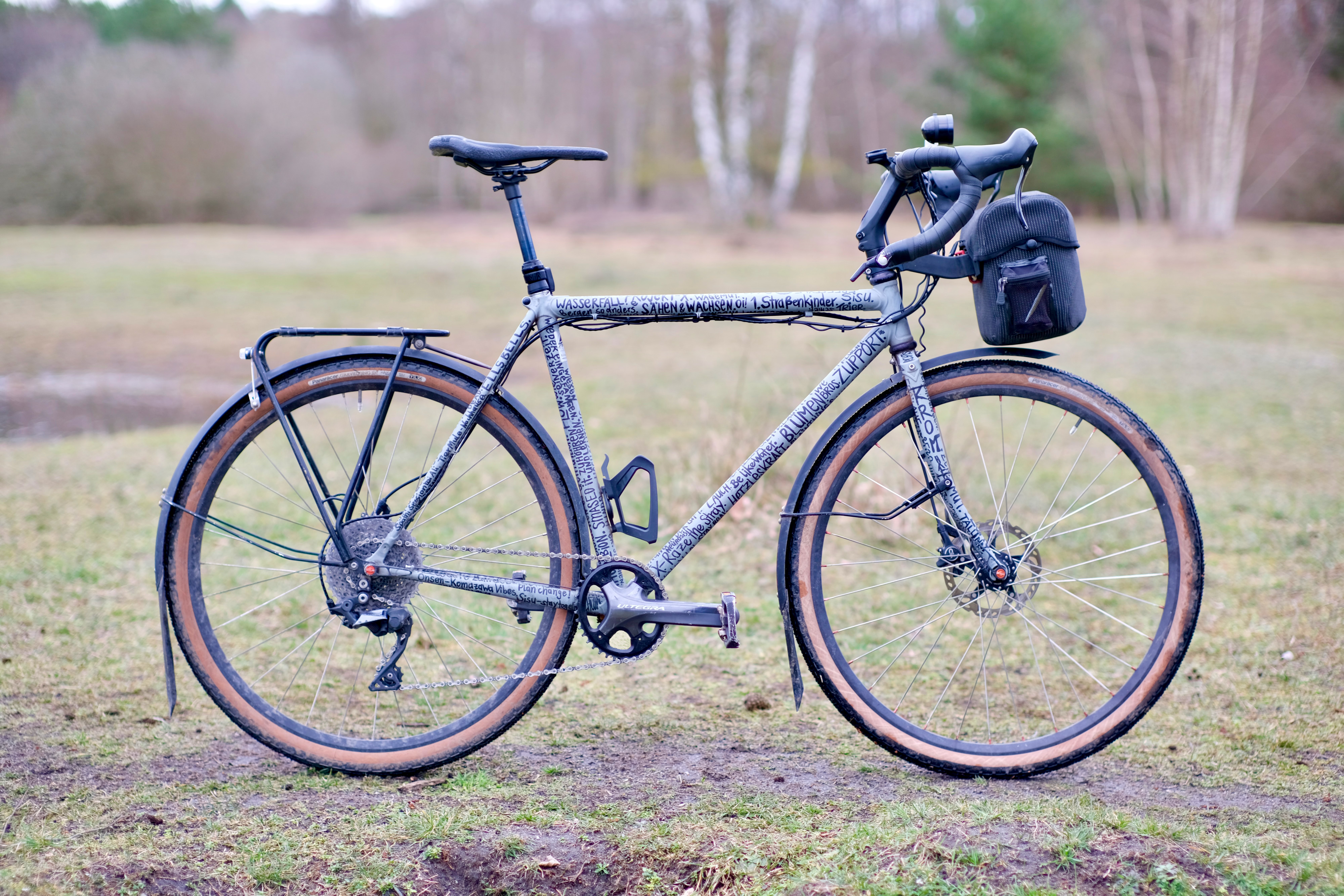 Silent Cross Fahrrad. Das Fahrrad zu meiner Meisterprojektarbeit. Ein Columbus Rohrsatz wurde mit Muffen verlötet. Das Ziel war ein vielseitiges, schnelles und leises Fahrrad zu bauen. Mein treuer Begleiteiter für Touren und Alltag. Mit der Vario-Sattelstütze können auch knifflige Abfahrten gemeistert werden und der cw-Wert schwindet wenn es schnell berab geht. Die Übersetzung wurde an die Topographie der fränkischen Schweiz angepasst. Seit der praktischen Prüfung 2017 befindet sich dieses Fahrrad in einem Optimierungsprozess und wird stetig angepasst.Â